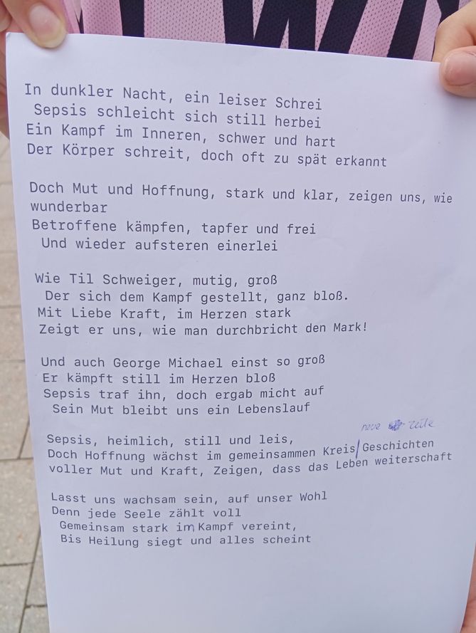 “Wir singen fürs Leben und für eine nationale Sepsis Strategie”